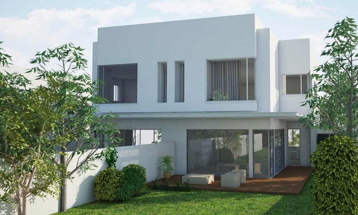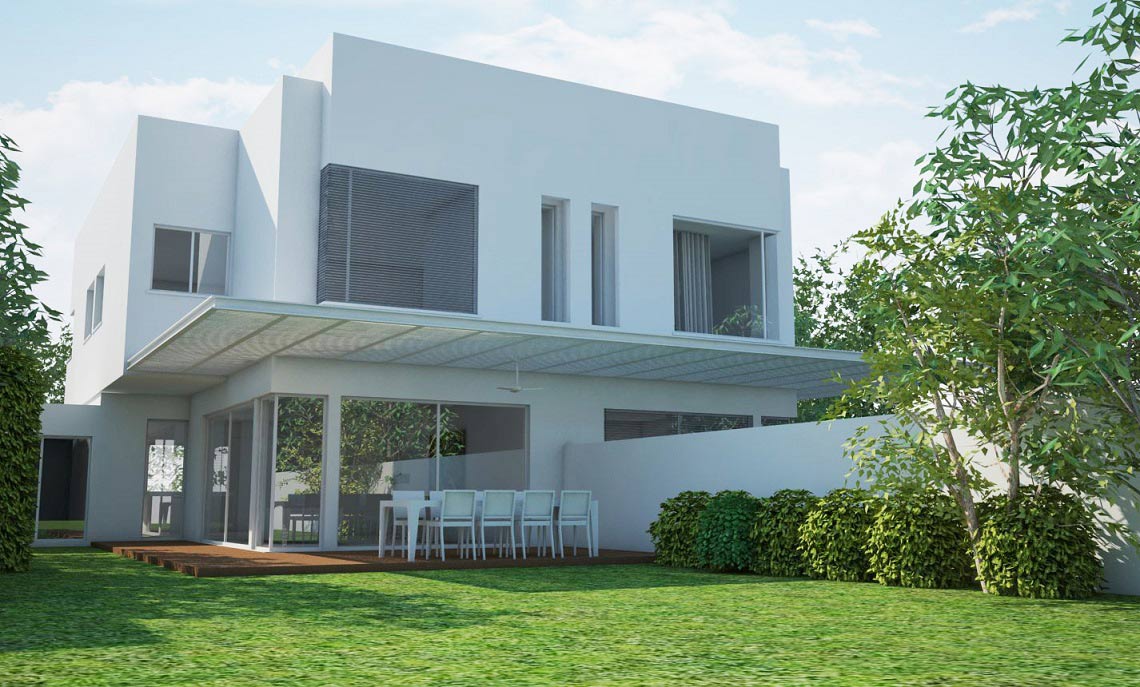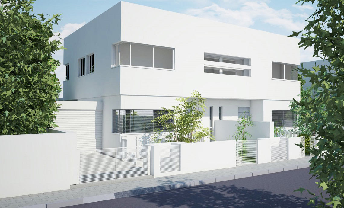 בית הקובייה תכנון אדריכלי ועיצוב – בית מגורים דו-משפחתי בצורת קובייה המתיישבת על קובייה בתכנית "מראה" כלפי החוץ על מנת ליצור חזית קדמית רחבה במגרש צר במידותיו. צורת הקובייה והפתחים האופקיים בגוון הלבן מזכירים לנו את השפה הארכיטקטונית של סגנון הבאוהאוס עם הניקיון העיצובי והנקי שמתקבל.