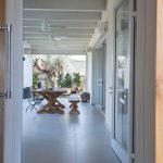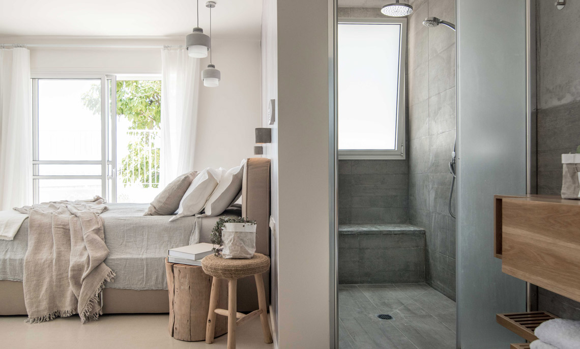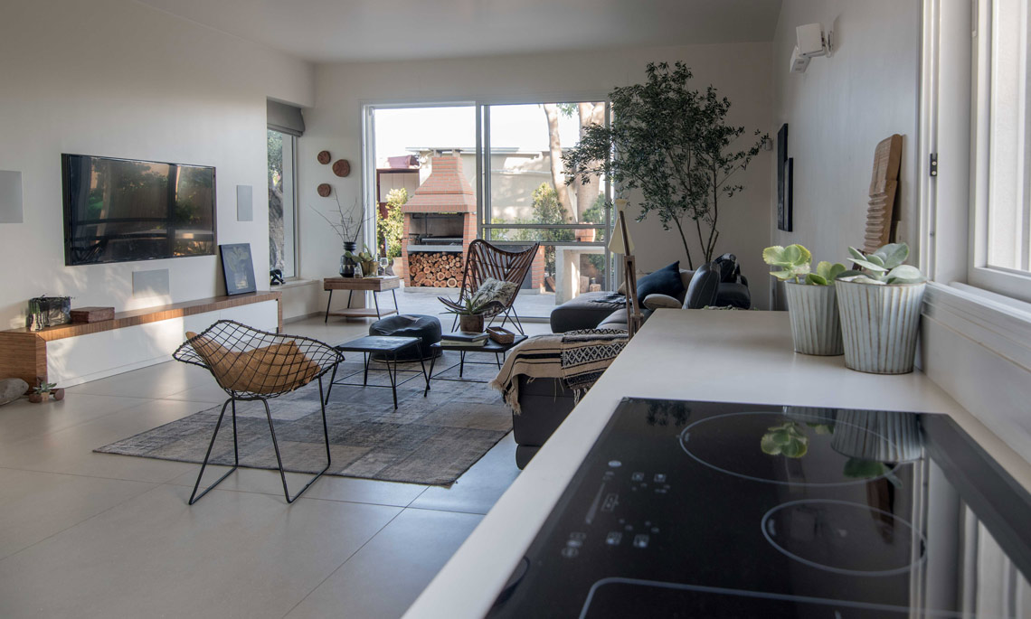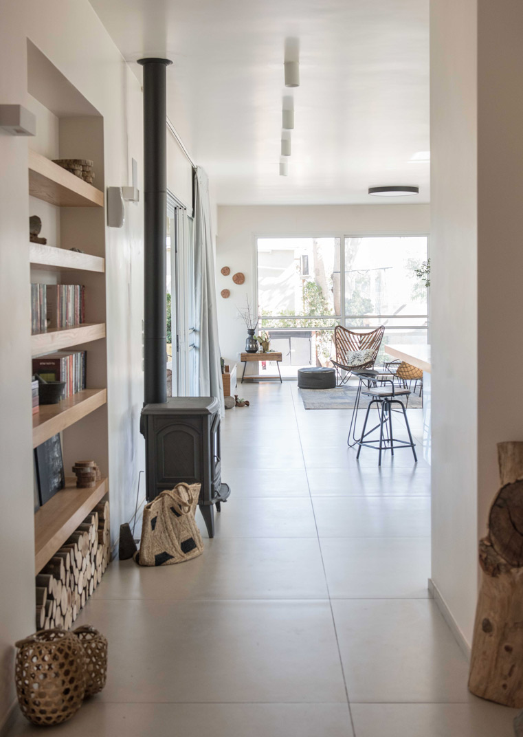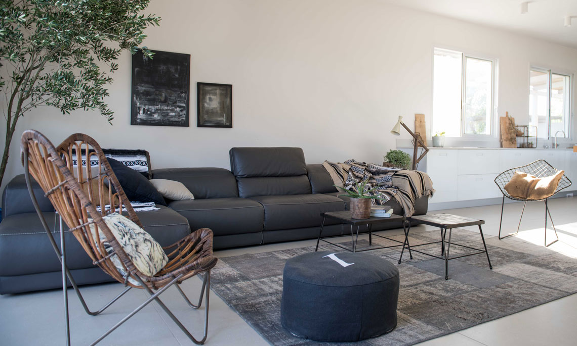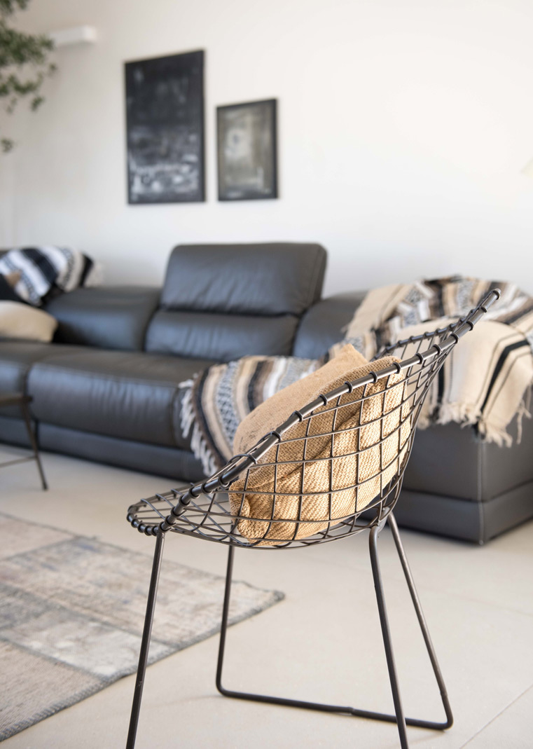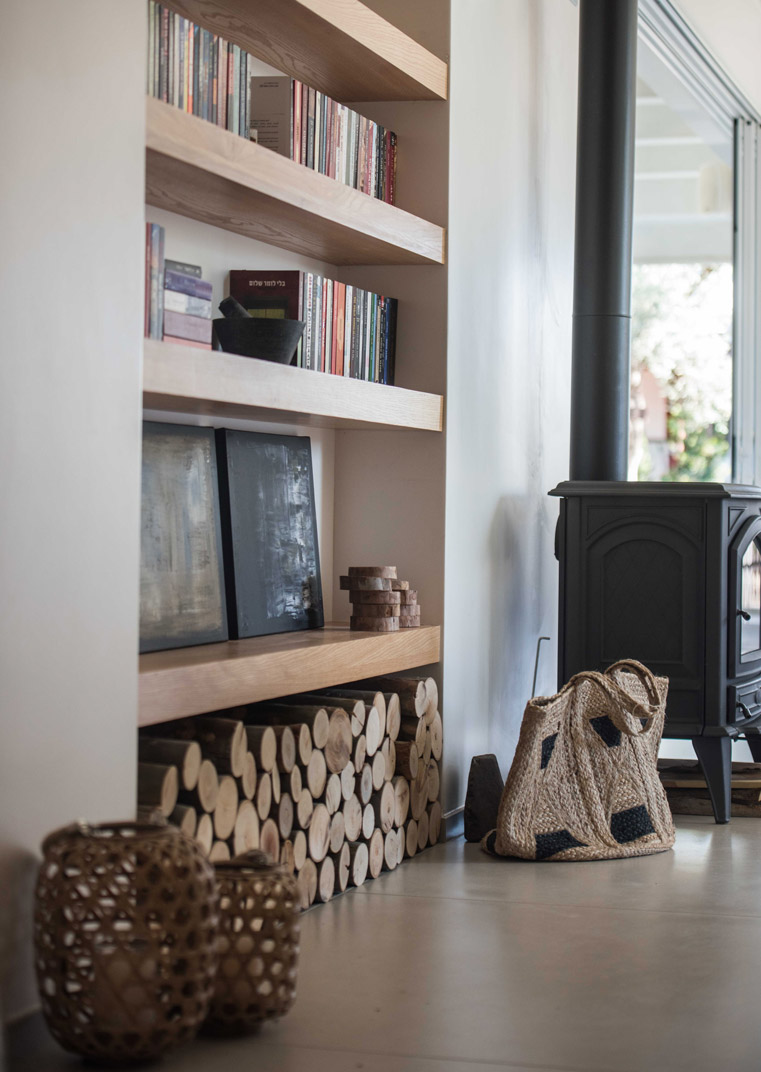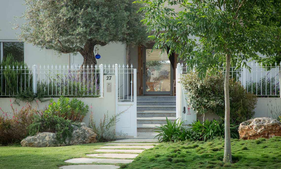 תכניות אדריכלות ועיצוב פנים לוילה במושב בשרון. תכנון אדריכלי של העמדת המבנה במגרש בצורת האות "L", מאפשר זווית ראיה מכל פינה בבית לכיוון חצר הבית והגינה וחדירת אור טבעי לחללים השונים. ריבוי בשימוש גוונים חמים בהלבשת הבית ליצירת שקט והרמוניה שהתקבלו מפרטי העיצוב המשלימים בבית.